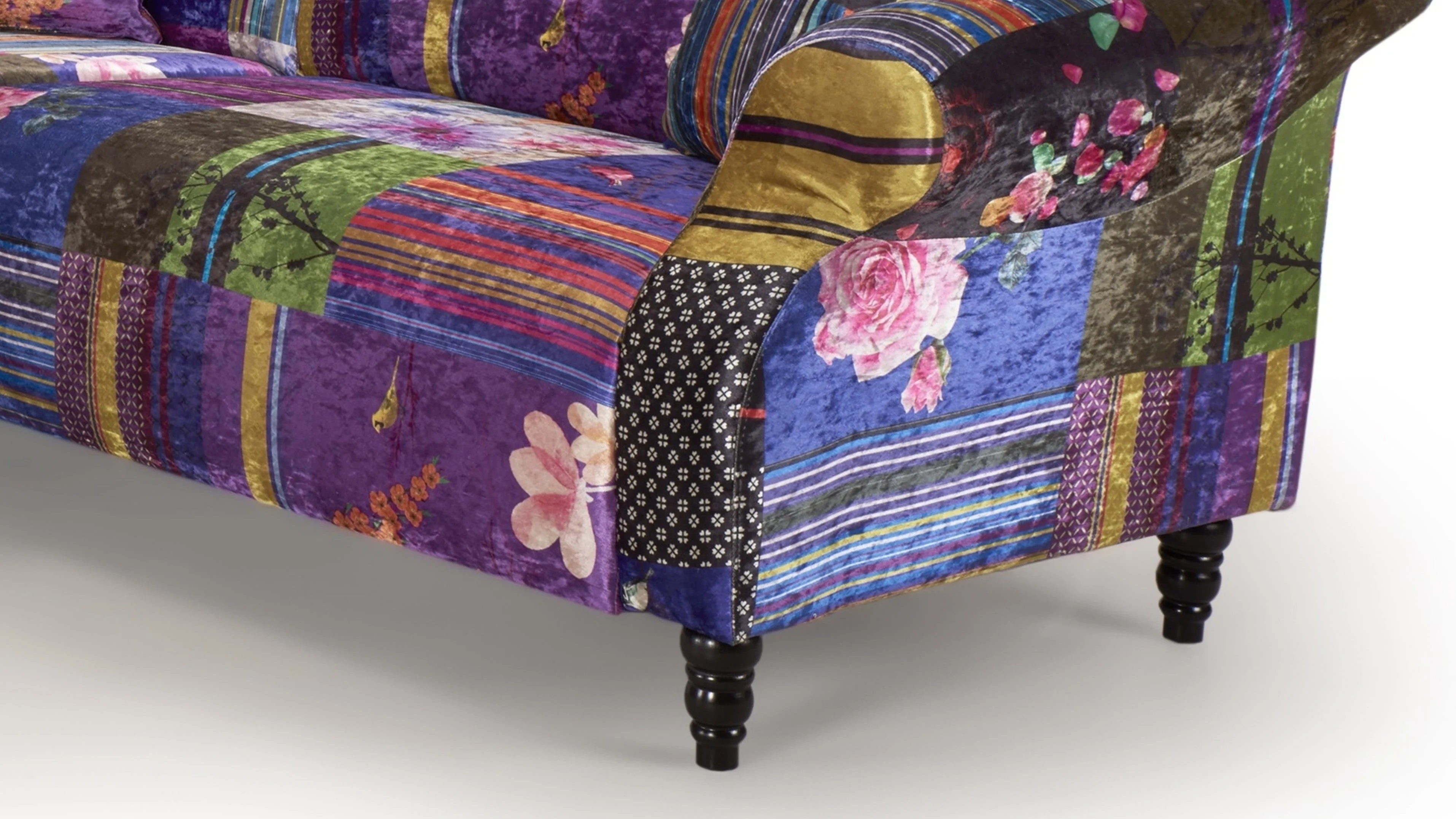 All Love Sofas products are handcrafted and the exact size of the item may vary slightly. Due to the patchwork nature of the design, the layout and distribution of patterns may differ from the promotional pictures, making each piece a unique creation. Our items are photographed under bright studio lights, and may appear slightly darker in different environments. All of our items are fully compliant with UK fire regulations meant for personal use.