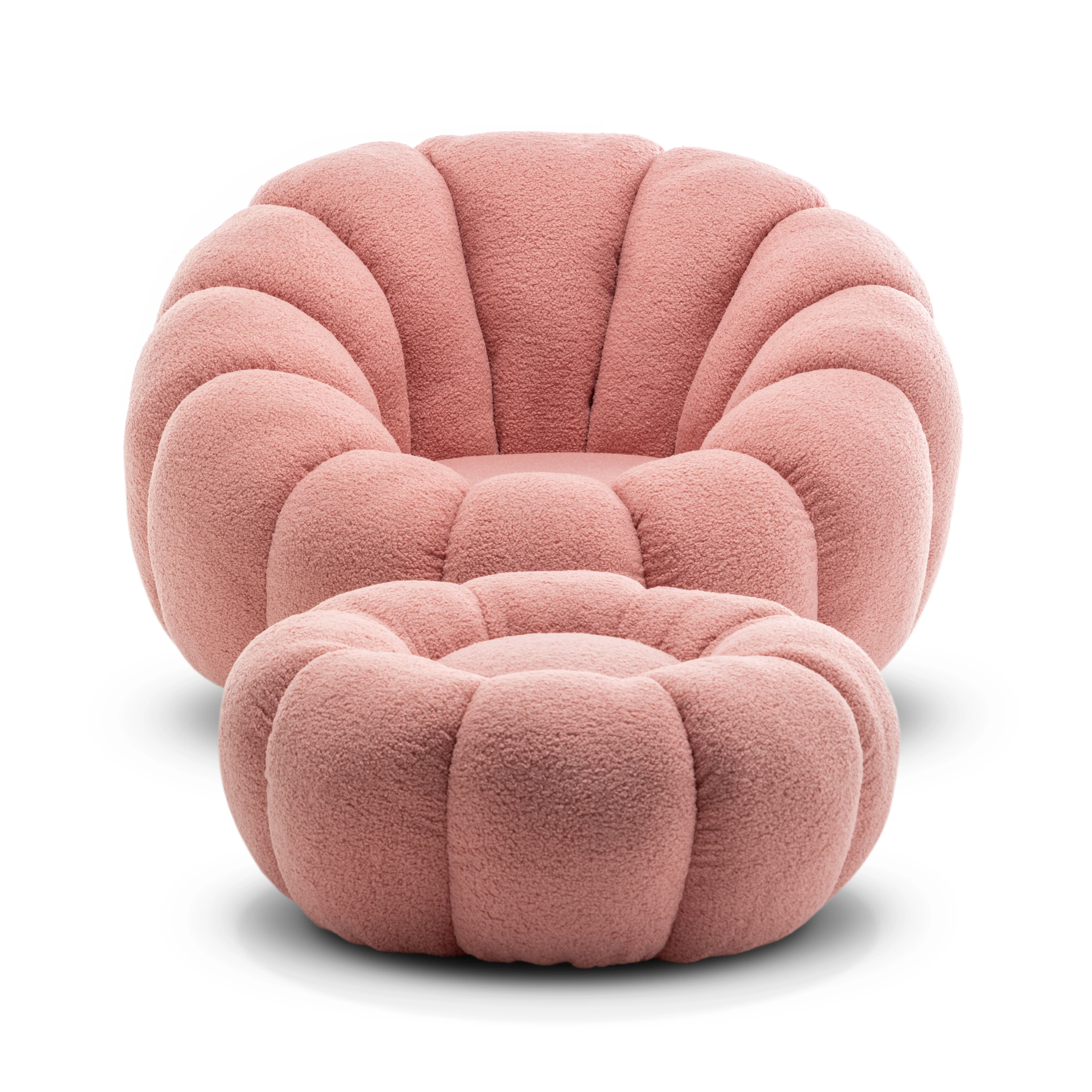 Teddy Boucle Fabric Pink 1 Seater Swivel Sofa with Footstool MIRIELLE
