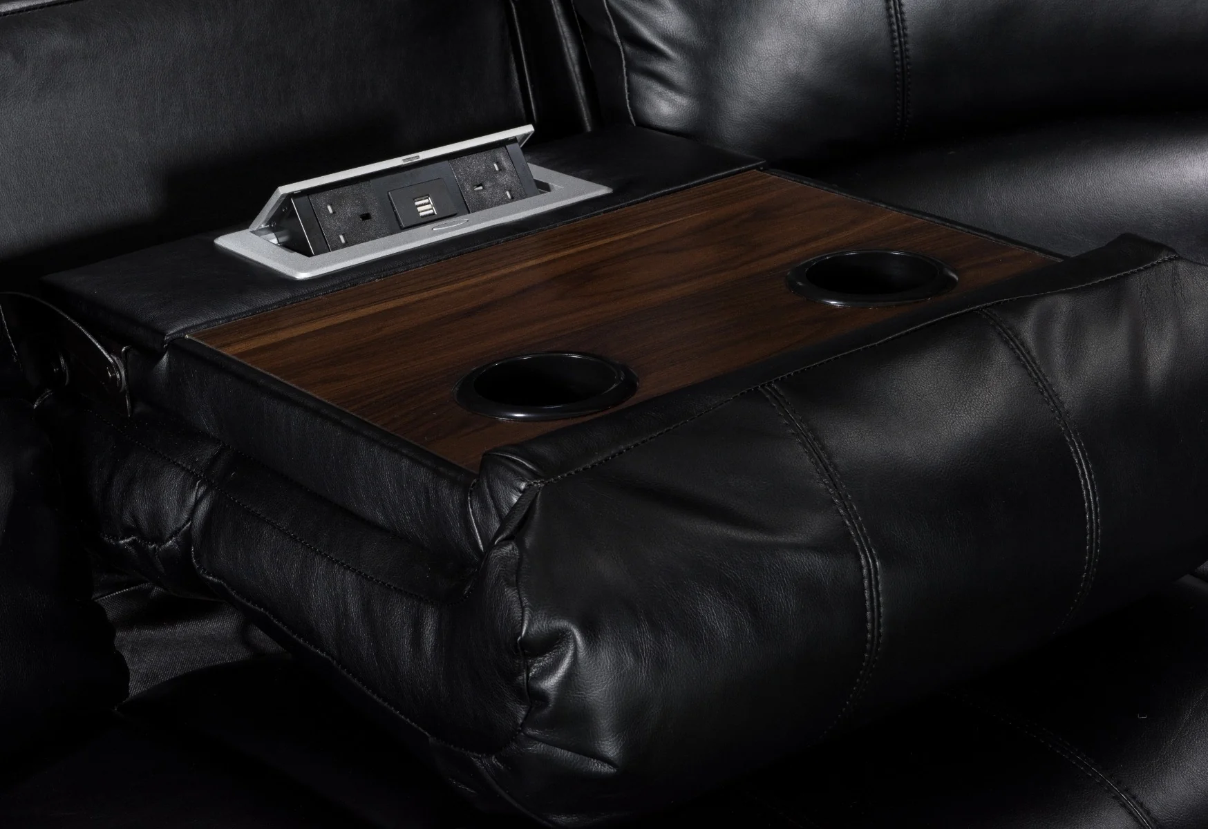 Introducing the Faux Leather Black 2C2 Corner Valencia Sofa, a sturdy and stylish addition to your living room, bedroom, or office space. Upholstered in high-quality faux leather, this corner sofa features a lever-based manual recline mechanism on the side seats, allowing for easy adjustment to your desired position and providing a comfortable and supportive experience for long leisure and daily use. The drop-down back on the two seater sections reveals convenient cupholders, adding to the sofa's functionality.