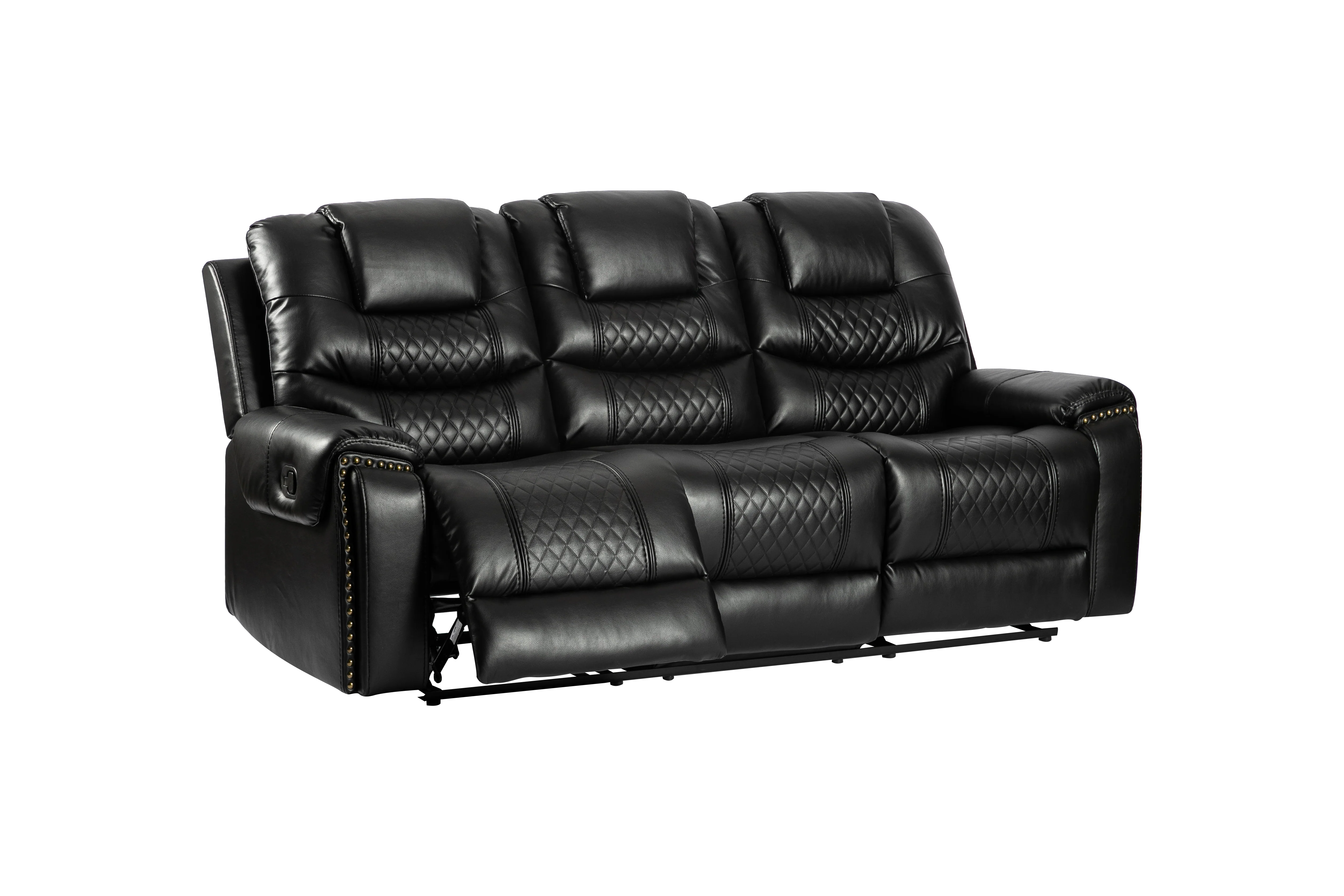Faux Leather Black 3 + 2 + 1 Seater Manual Recliner Sofa Set RAVENNA