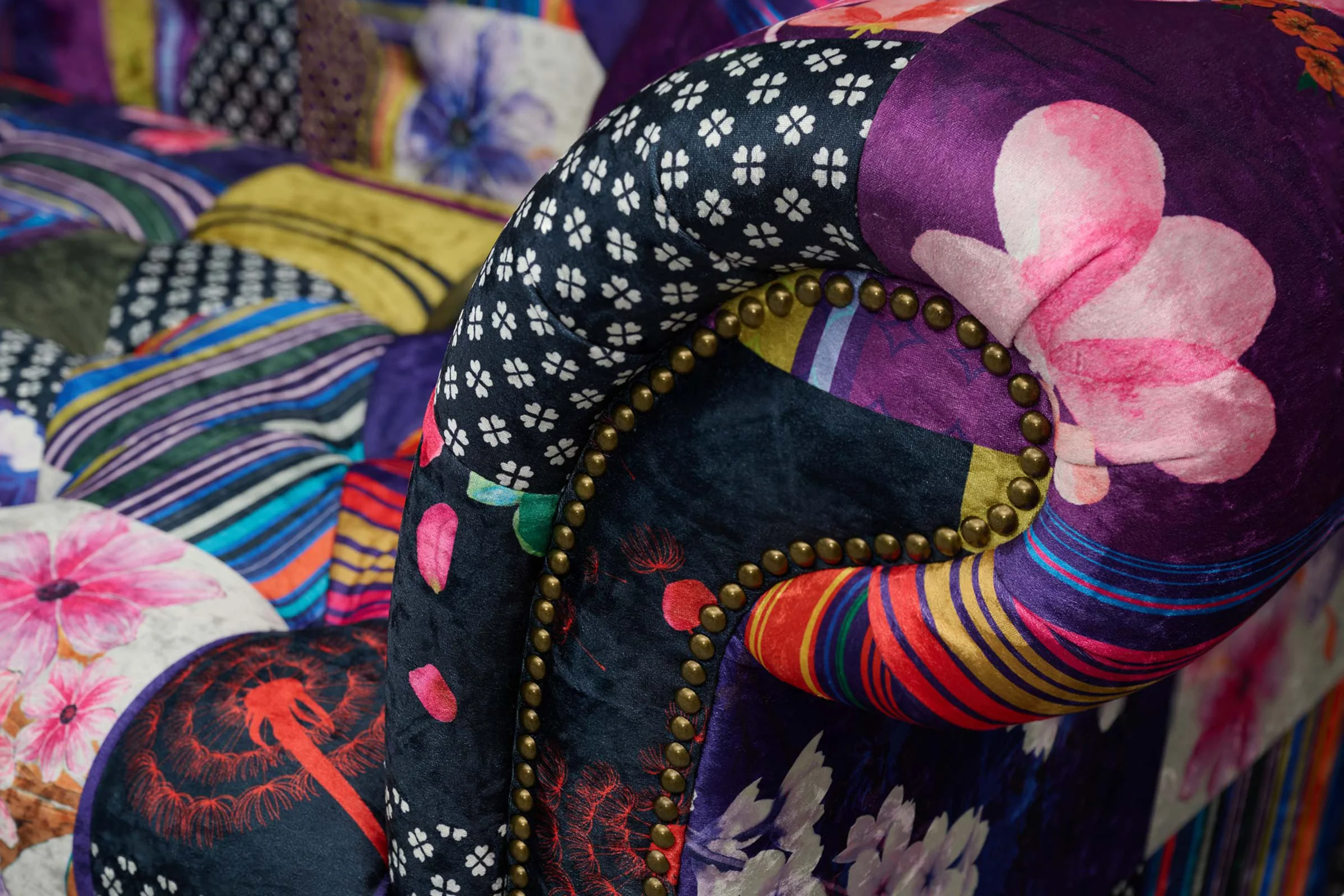 All Love Sofas products are handcrafted and the exact size of the item may vary slightly. Due to the patchwork nature of the design, the layout and distribution of patterns may differ from the promotional pictures, making each piece a unique creation. Our items are photographed under bright studio lights, and may appear slightly darker in different environments. All of our items are fully compliant with UK fire regulations meant for personal use.
