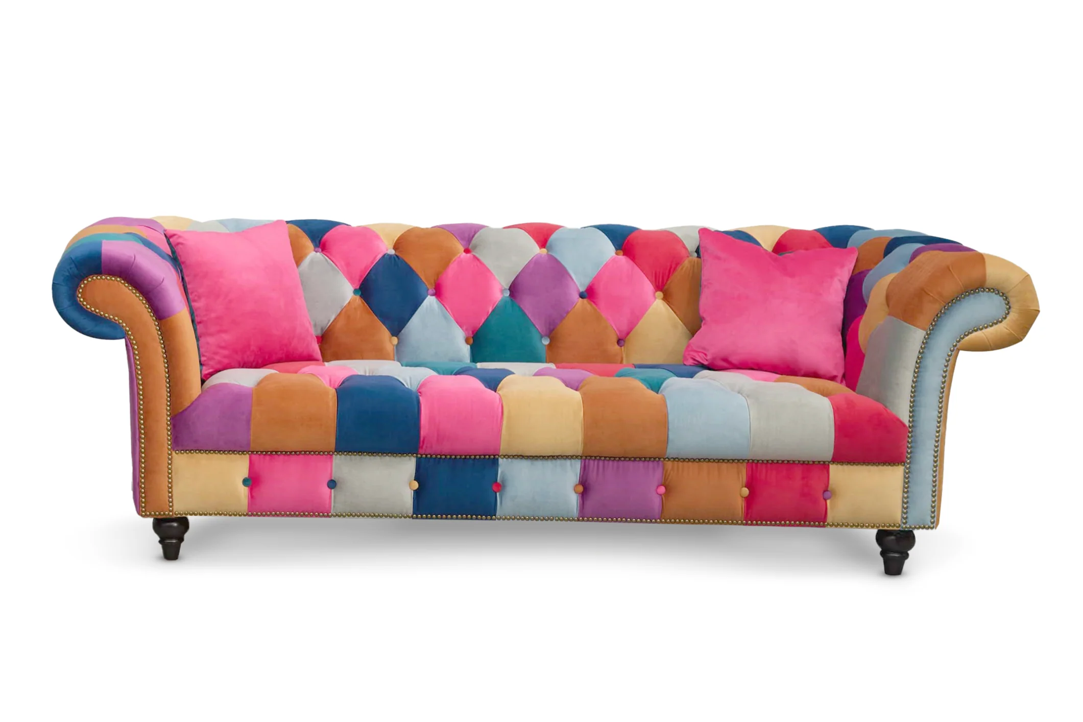 Multicoloured Velvet Patchwork 3 Seater Scroll Arm Chesterfield Sofa PORTOFINO
