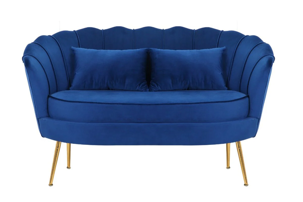 Introducing the Velvet Blue Daisy 2 + 1 Seat Sofa Set, an exquisite and elegant addition to elevate your living room or bedroom decor. This set includes the Velvet Blue 1 Seater Daisy Sofa and the Velvet Blue 2 Seater Daisy Sofa, each featuring a graceful scalloped back design and elegant gold legs. Upholstered in vibrant polyester velvet, these sofas exude sophistication while providing utmost comfort with their included cushions.
