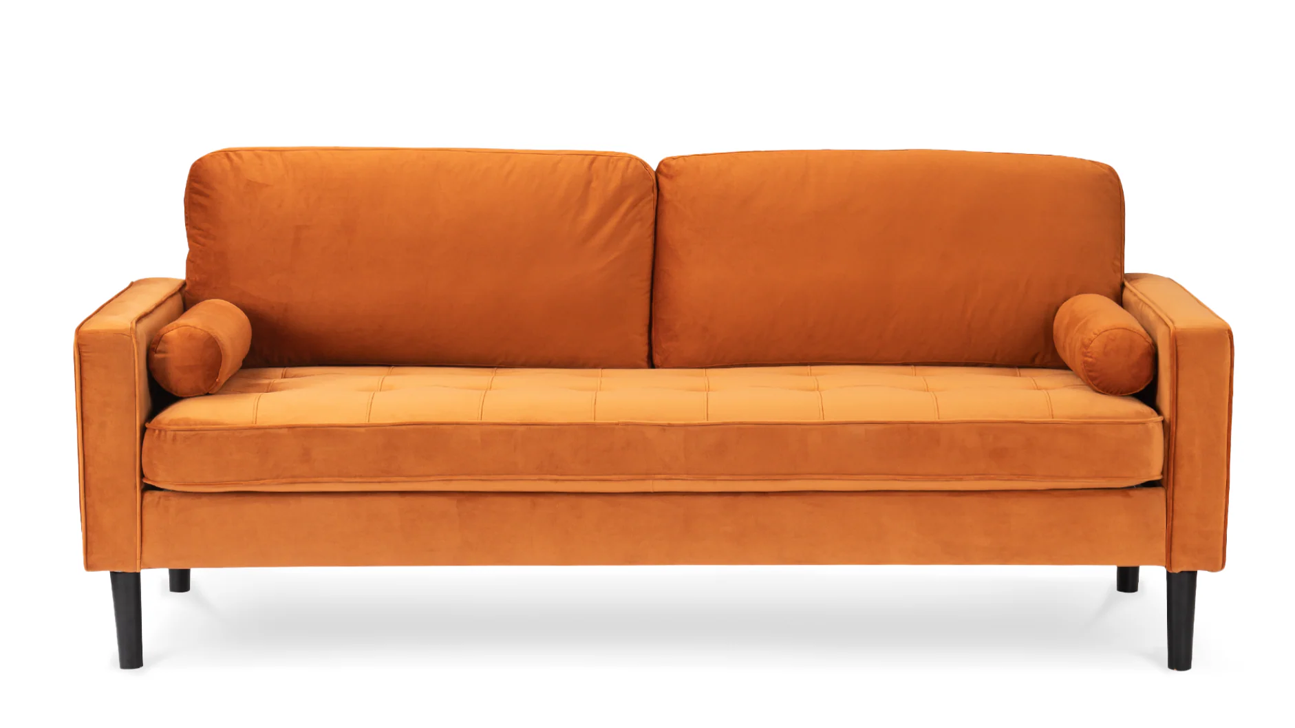 The Velvet Orange 3 Seater Brindisi Sofa features clean lines and a simple, yet sleek design. This range is the perfect blend of effortless elegance and contemporary comfort, providing a modern aesthetic that adds style to your living room.